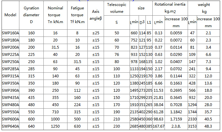 SWP type universal coupling, cross shaft bearing seat is split type, considering that the bearing is a wearing part in the universal joint, the bearing gland is made into a split, in order to facilitate the replacement of the bearing. However, the gland bolts are easy to loosen. According to the structure of the intermediate shaft and the connection form of the shaft fork, there are 7 types: SWP A type (with telescopic long type) cross shaft universal joint, B type - telescopic short universal joint, C type - no telescopic short universal joint, D type - no telescopic long universal joint, E type - with telescopic double flange long universal joint, F type - large Telescopic long universal coupling, G type - with telescopic ultra-short universal coupling. Type A - has a telescopic length; Type B - has a telescopic short type; Type C - no telescopic short type; D type - no telescopic long type; E type - has a telescopic double flange length; F type - large telescopic long type; ZG type - dressing through type FG type--reverse through type ![]() ![]() |