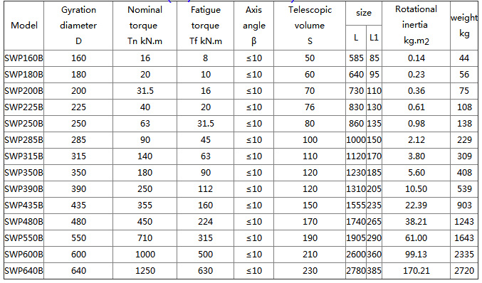 SWP-B universal coupling Features and applications: Bearings are wearing parts. In order to facilitate the replacement of the bearing, the bearing seat gland is made into a split type, bolted, and can work under the condition of β≤5°~10°. Applicable to rolling machinery, lifting and transportation machinery, engineering machinery, mining machinery, petroleum machinery and other heavy machinery, connecting two different axes of shaft drive, can not buffer, reduce vibration.