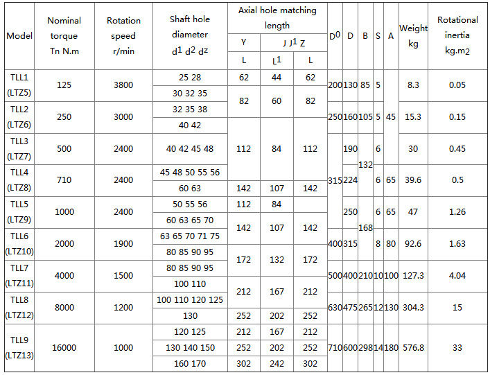 LTZ type with brake wheel elastic sleeve pin coupling Original "TLL type with brake wheel elastic sleeve pin coupling" is a kind of elastic sleeve pin coupling, which is a lock that relies on elastic sleeve pin group The tightening force is generated by the frictional moment of the contact surface, and the rubber elastic sleeve is compressed to transmit the torque, so it is suitable for the high-speed, the installation base has good rigidity and the alignment precision is high. However, the elastic sleeve work is subject to compression deformation. Due to the small volume and thin thickness of the elastic sleeve, the elastic deformation ability is limited. Therefore, although the LTZ type elastic sleeve pin coupling can compensate the axial displacement and elasticity, the amount of compensation for the axial displacement is less, and the elasticity is weak. Therefore, the transmission environment with low impact load and low vibration damping requirements should be selected. LTZ type with brake wheel elastic sleeve pin coupling function is the same as LT type elastic sleeve pin coupling, the difference is that LTZ type with brake wheel elastic sleeve pin coupling in LT elastic sleeve pin coupling A brake wheel has been added to the original base, and the speed of the coupling can be adjusted by controlling the brake wheel. LTZ type with brake wheel elastic sleeve pin coupling is referred to as the pin coupling. The working temperature is -20~70°C; the transmission torque is 6.3~16000N.m; the shaft hole type is Y-shaped hole, J-shaped hole, J1 type hole, Z type hole; the pin bolt hole slope is 1:10; It has general shock absorption and certain two-axis offset compensation ability, convenient for disassembly and assembly, and can adapt to frequent and reverse multi-variable starting occasions. A wide range of common flexible couplings. ![]() ![]() |