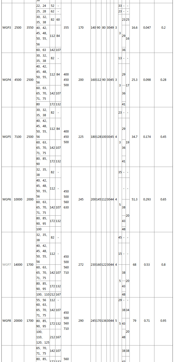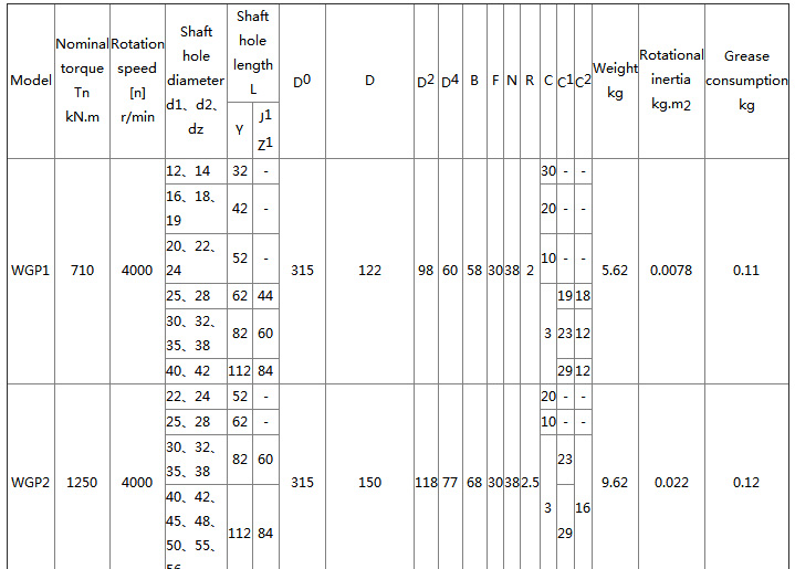 WGT type - connected to the middle sleeve type, suitable for two-axis long-distance connection, the allowable speed [n] depends on the length and quality of the intermediate sleeve, and the critical speed should be checked;