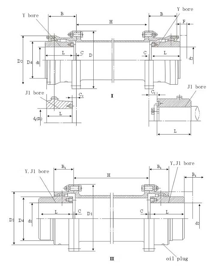 Type I--The sealed end cap is of separate type with large tooth spacing, which can allow large radial displacement and can be connected with Y, J1 and Z1 shaft extensions;