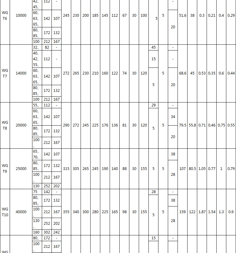WGT type - connected to the middle sleeve type, suitable for two-axis long-distance connection, the allowable speed [n] depends on the length and quality of the intermediate sleeve, and the critical speed should be checked;