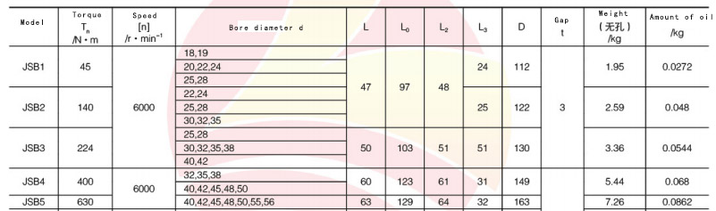 JSB type serpentine spring coupling is referred to as "snake spring coupling" according to JB/T 8869-2000 standard. Unlike JS type serpentine spring coupling, JS type serpentine spring coupling is used for horizontal installation. The JSB type serpentine spring coupling is used for vertical installation.