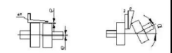 1、利用直角尺测量联轴器的同轴度(径向位移),利用平面规和楔形间隙规来测量联轴器的平行度(角向位移),这种方法简单,应用比较广泛,但精度不高,一般用于低速或中速等要求不太高的运行设备上。如图示: