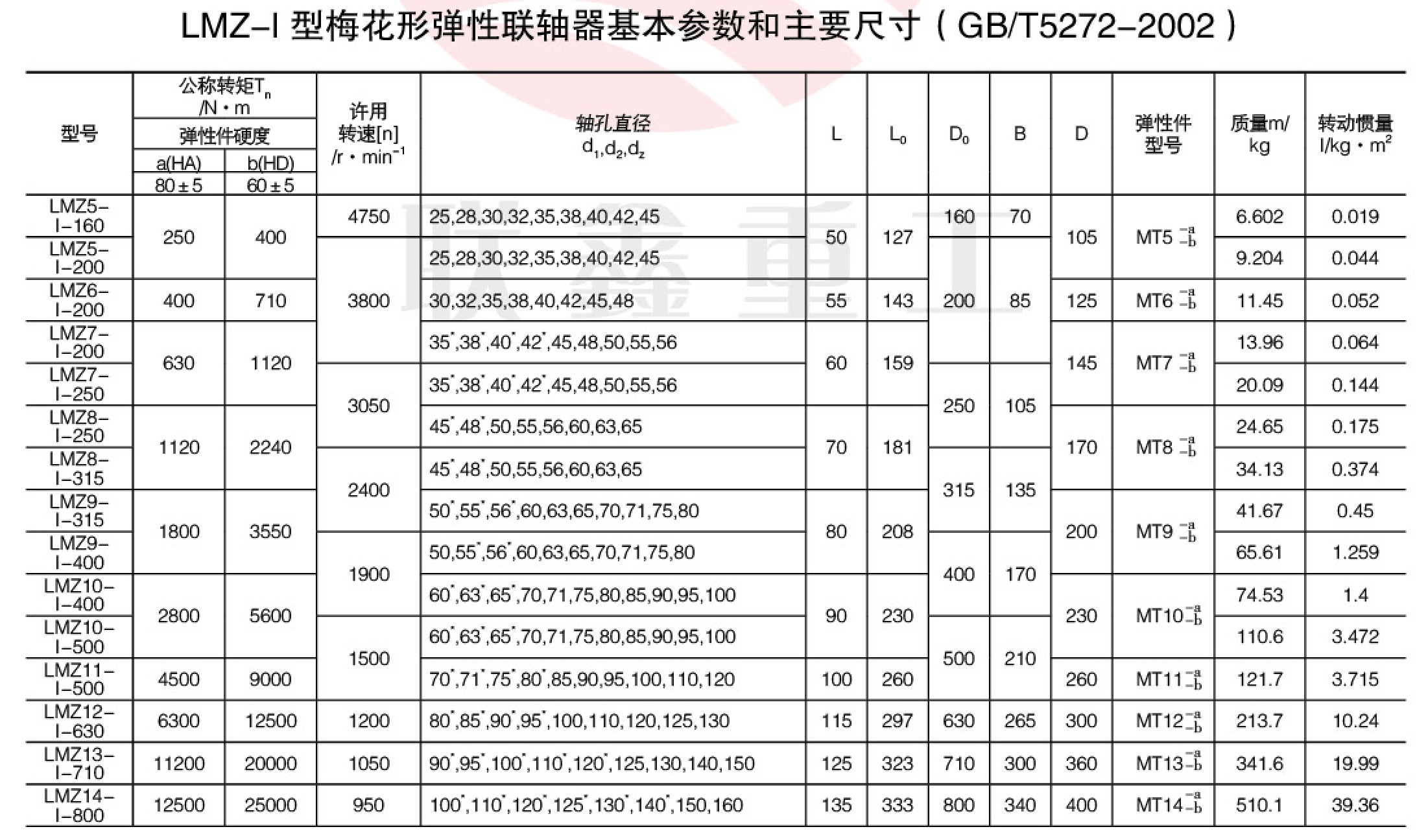 MLL-I(LMZ-I)梅花联轴器 特点及应用场合:具有补偿两轴相对偏移、减振、缓冲性能、径向尺寸小,结构简单、不用润滑、承载能力较高,维护方使、更换弹性元件需轴向移动 (MLS型除外),适用于联接同轴线,起动频繁,正反转变化,中速、中等转矩传动轴系和要求工作可靠性高的工作部位。不适用于重载、低速及轴向尺寸受艰制,更换弹性元件后两轴对中困难的部位。