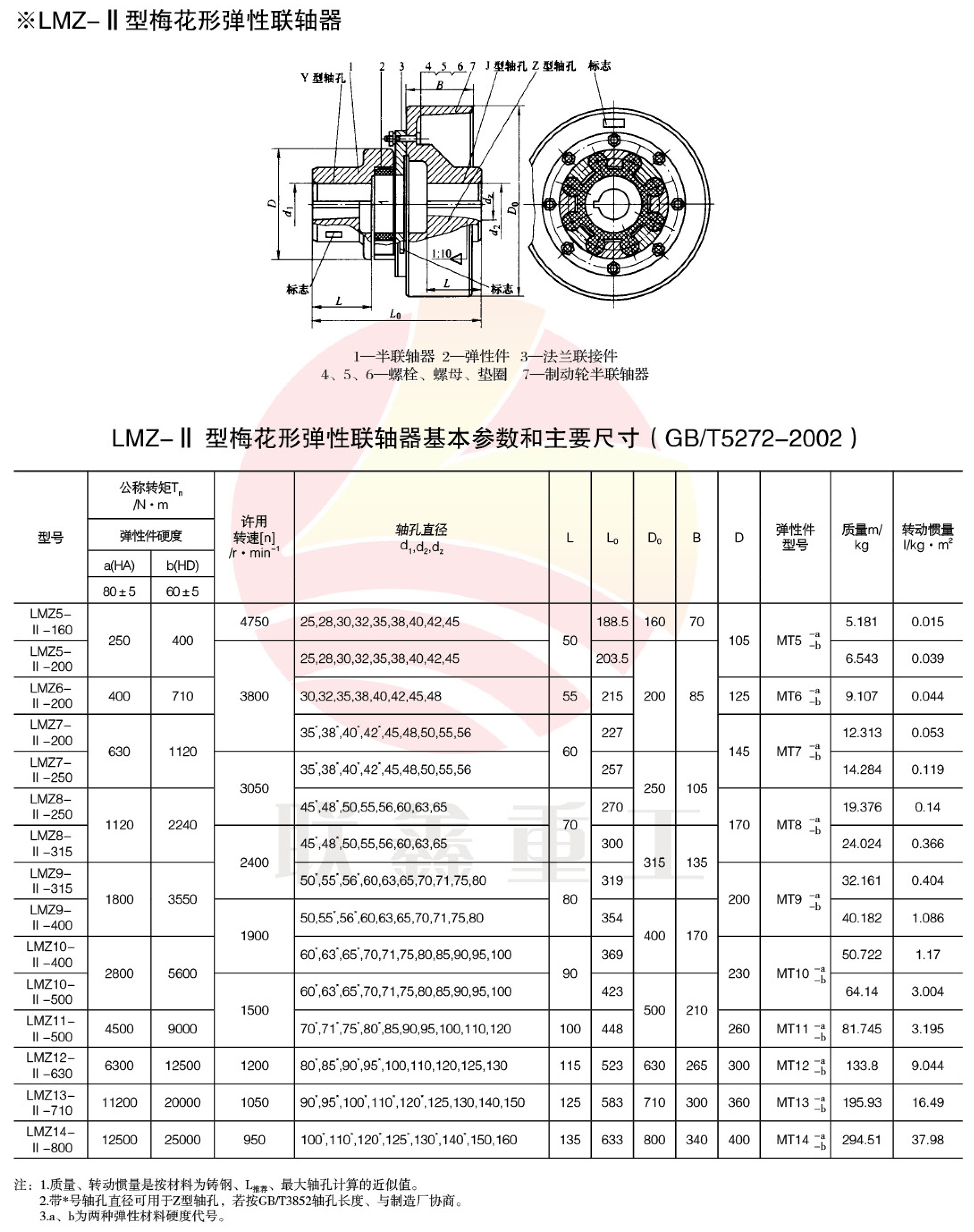 MLL-II(LMZ-II)梅花联轴器 特点及应用场合:具有补偿两轴相对偏移、减振、缓冲性能、径向尺寸小,结构简单、不用润滑、承载能力较高,维护方使、更换弹性元件需轴向移动 (MLS型除外),适用于联接同轴线,起动频繁,正反转变化,中速、中等转矩传动轴系和要求工作可靠性高的工作部位。不适用于重载、低速及轴向尺寸受艰制,更换弹性元件后两轴对中困难的部位。