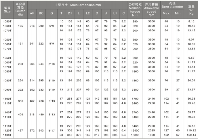 福克T90联轴器的参数及主要尺寸