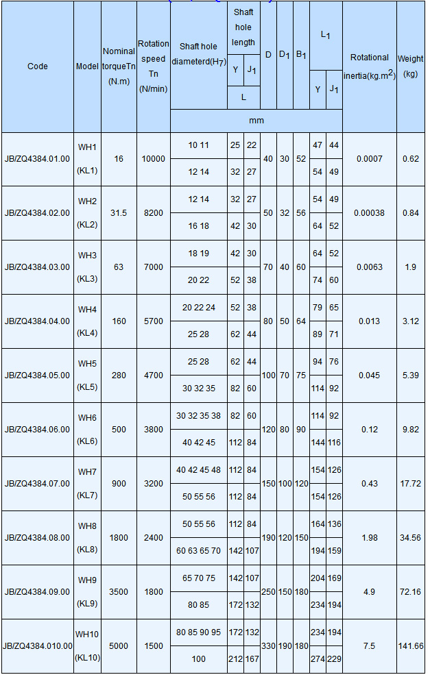 WH (KL) type slider coupling Features and applications: can not buffer, reduce vibration, small radial size, small moment of inertia. Suitable for two-axis joints with small torque, little change in load, and no severe impact