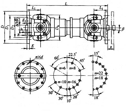 SWP-G universal joint coupling Features and applications: Bearings are wearing parts. In order to facilitate the replacement of the bearing, the bearing seat gland is made into a split type, bolted, and can work under the condition of β≤5°~10°. Applicable to rolling machinery, lifting and transportation machinery, engineering machinery, mining machinery, petroleum machinery and other heavy machinery, connecting two different axes of shaft drive, can not buffer, reduce vibration. Type A - has a telescopic length; Type B - has a telescopic short type; Type C - no telescopic short type; D type - no telescopic long type; E type - has a telescopic double flange length; F type - large telescopic long type; ZG type - dressing through type FG type--reverse through type ![]() ![]() |